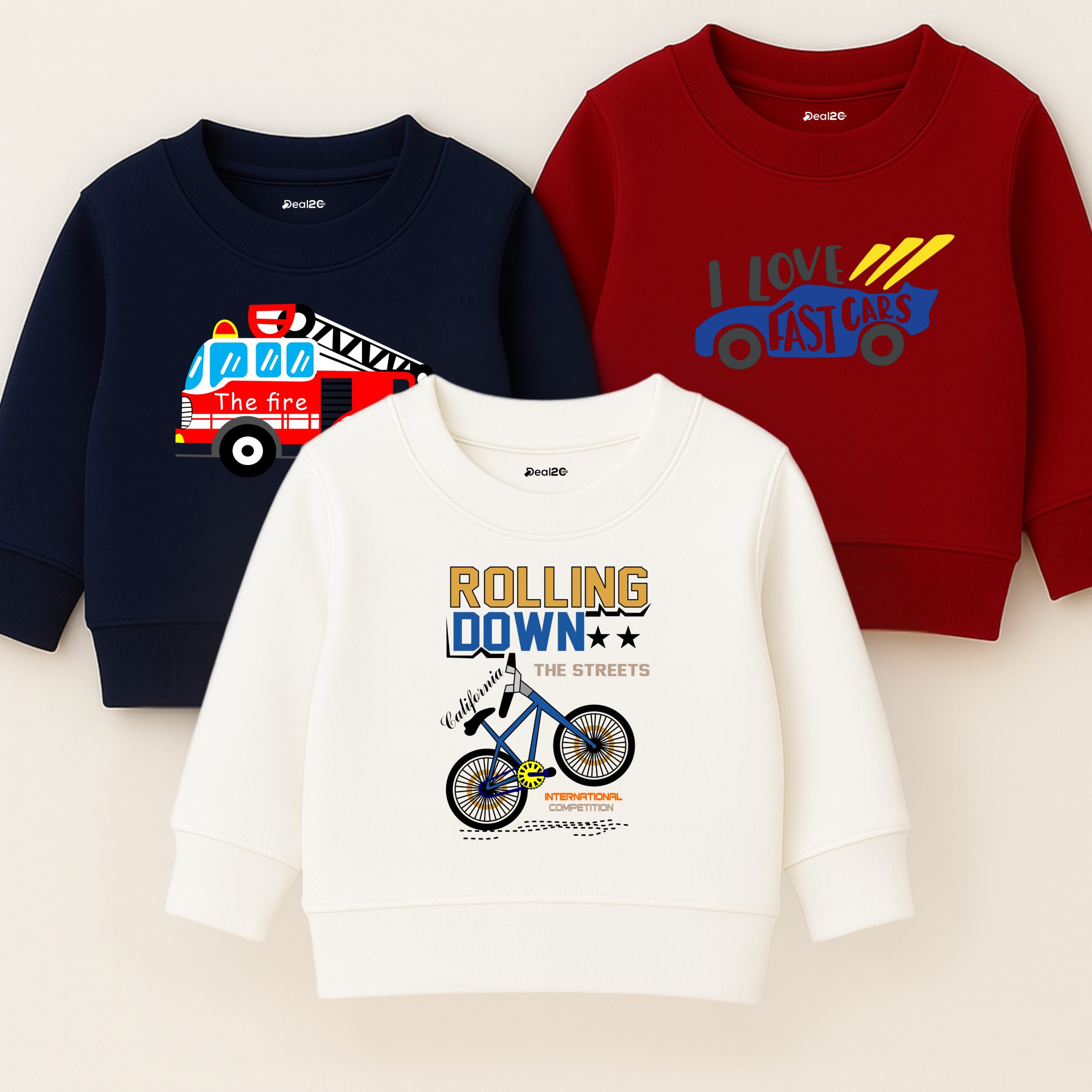 ✅ Pack of 3 Rolling Down the Streets Printed Sweatshirts for Young Kids
