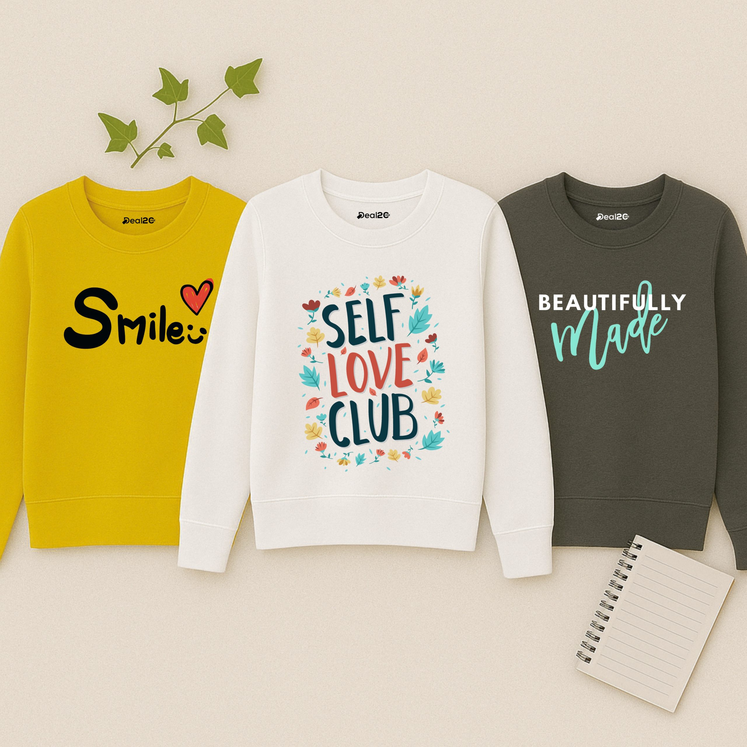 Pack of 3 Self Smile Made Printed Sweatshirts for Women