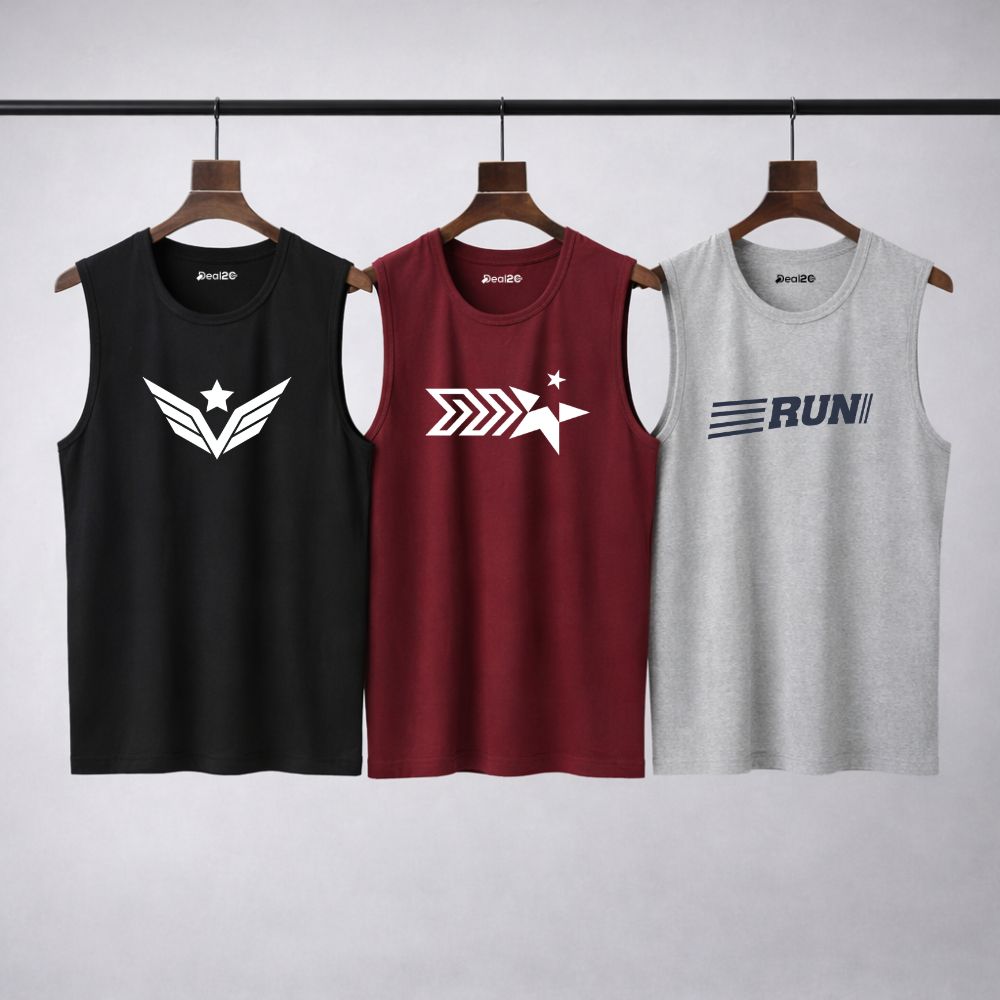 Upgrade your summer and workout wardrobe with this Pack of 3 Star Run Printed Tank Tops For Mens, designed for comfort, movement, and everyday performance. Made from soft and breathable jersey fabric, these tank tops are perfect for gym sessions, training, running, or casual daily wear.