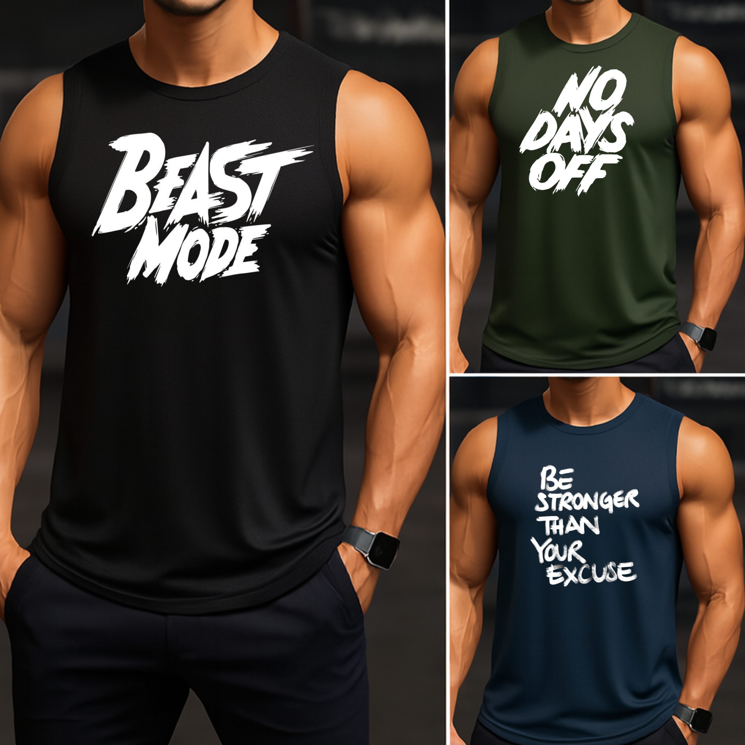 ✅ Pack of 3 Stronger Beast Mode Printed Tanktops for Men