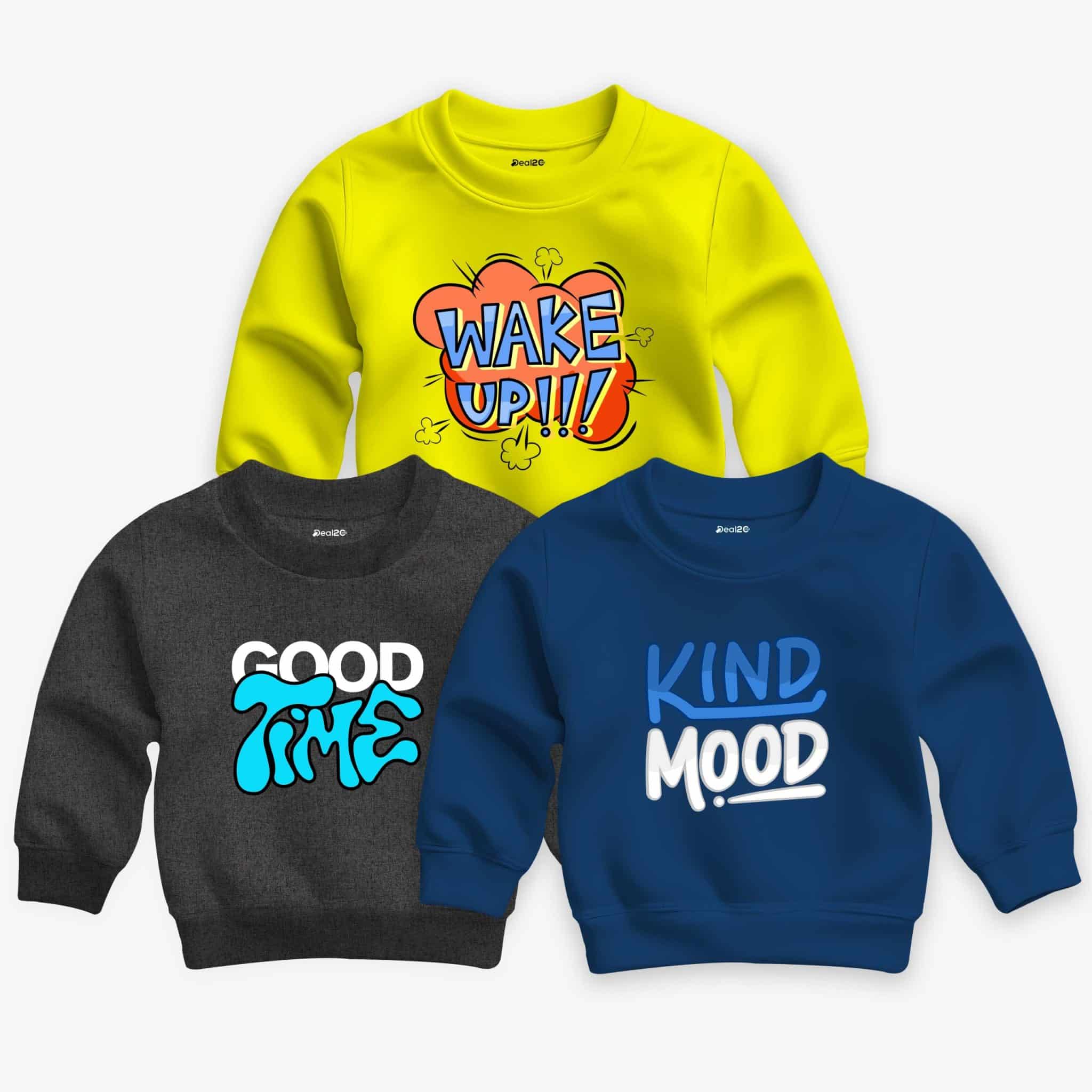 Pack of 3 Wake Up Good Mood Printed Sweatshirt For Young Kids