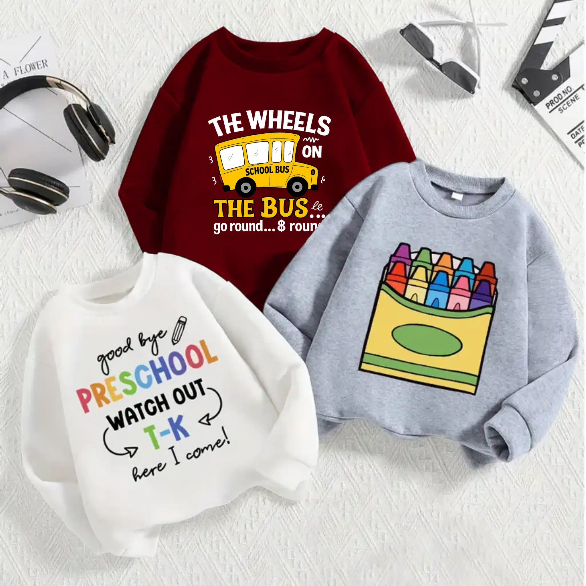 ✅ Pack of 3 Wheel On The Bus Printed Sweatshirts for Young Kids