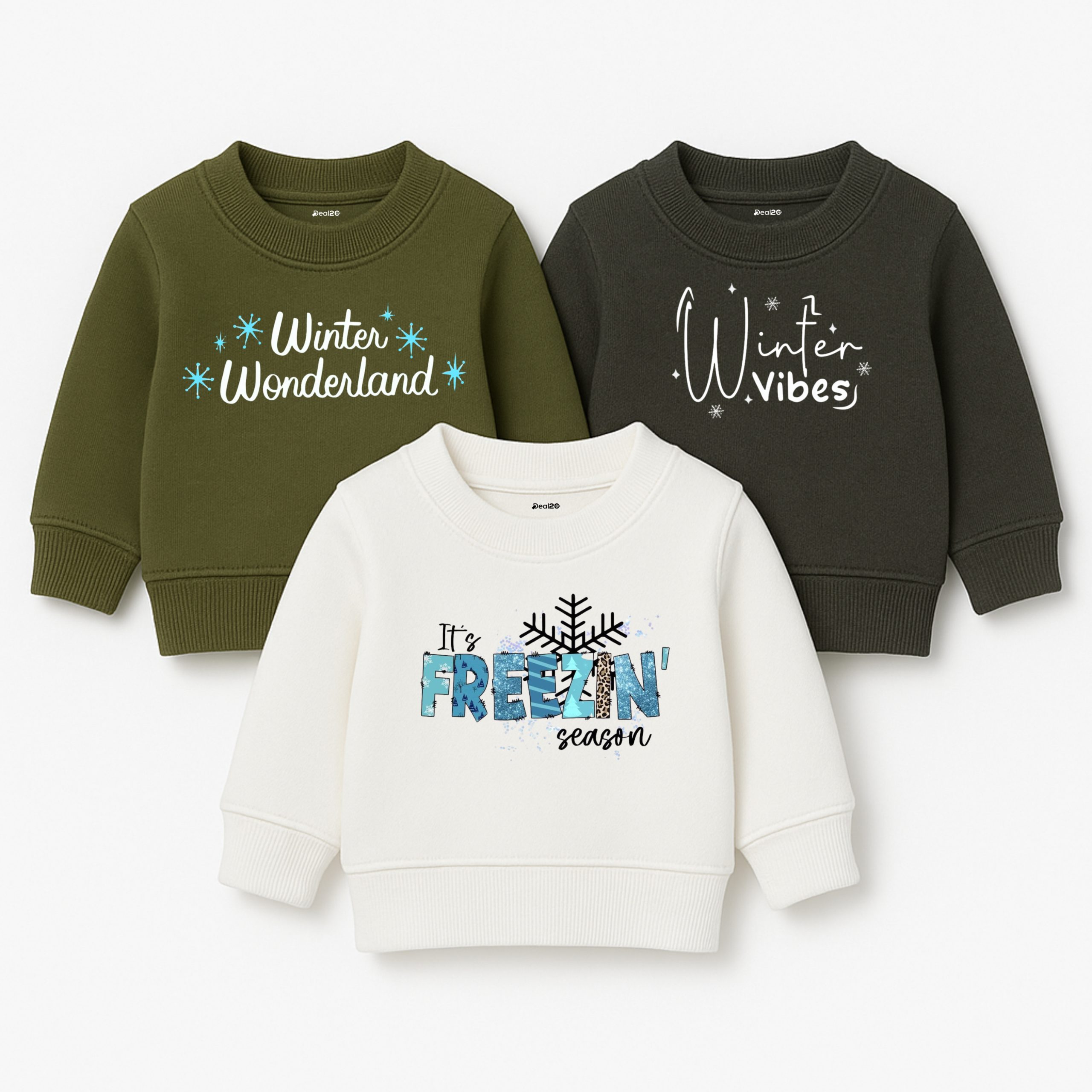 ✅ Pack of 3 Winter Vibes Frozen Printed Sweatshirts for Young Kids