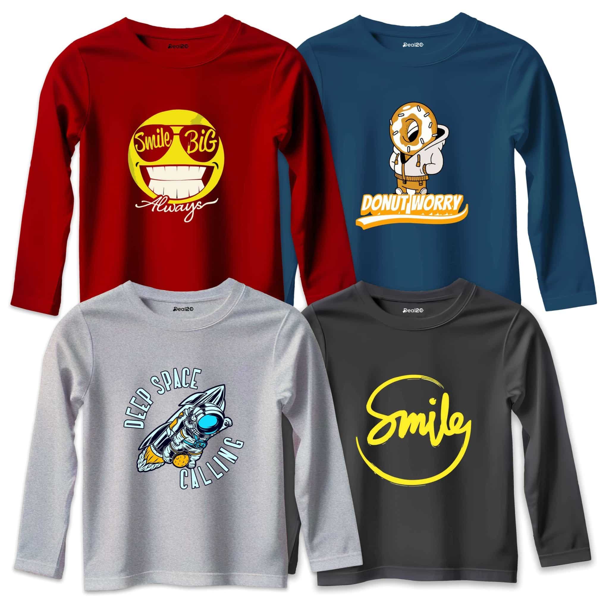 Pack of 4 Donut Smile Space Calling Long Sleeve T-Shirts For Young Kids