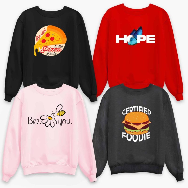 Pack of 4 Hope Certified Bee Pizza Printed Sweatshirt For Women
