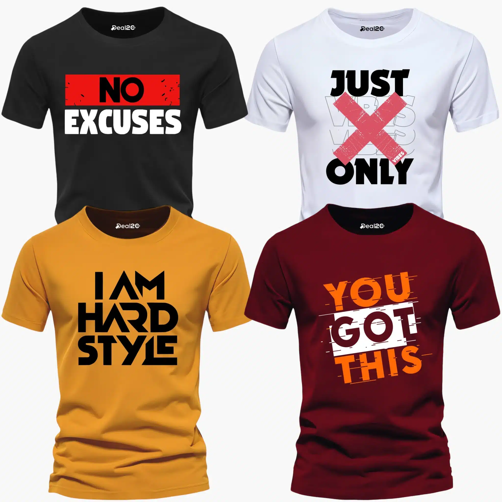 Introducing our Pack of 4 Mens Printed T-shirts, a must-have addition to your casual wardrobe. Crafted with meticulous attention to detail, these t-shirts offer a perfect blend of style, comfort, and durability.