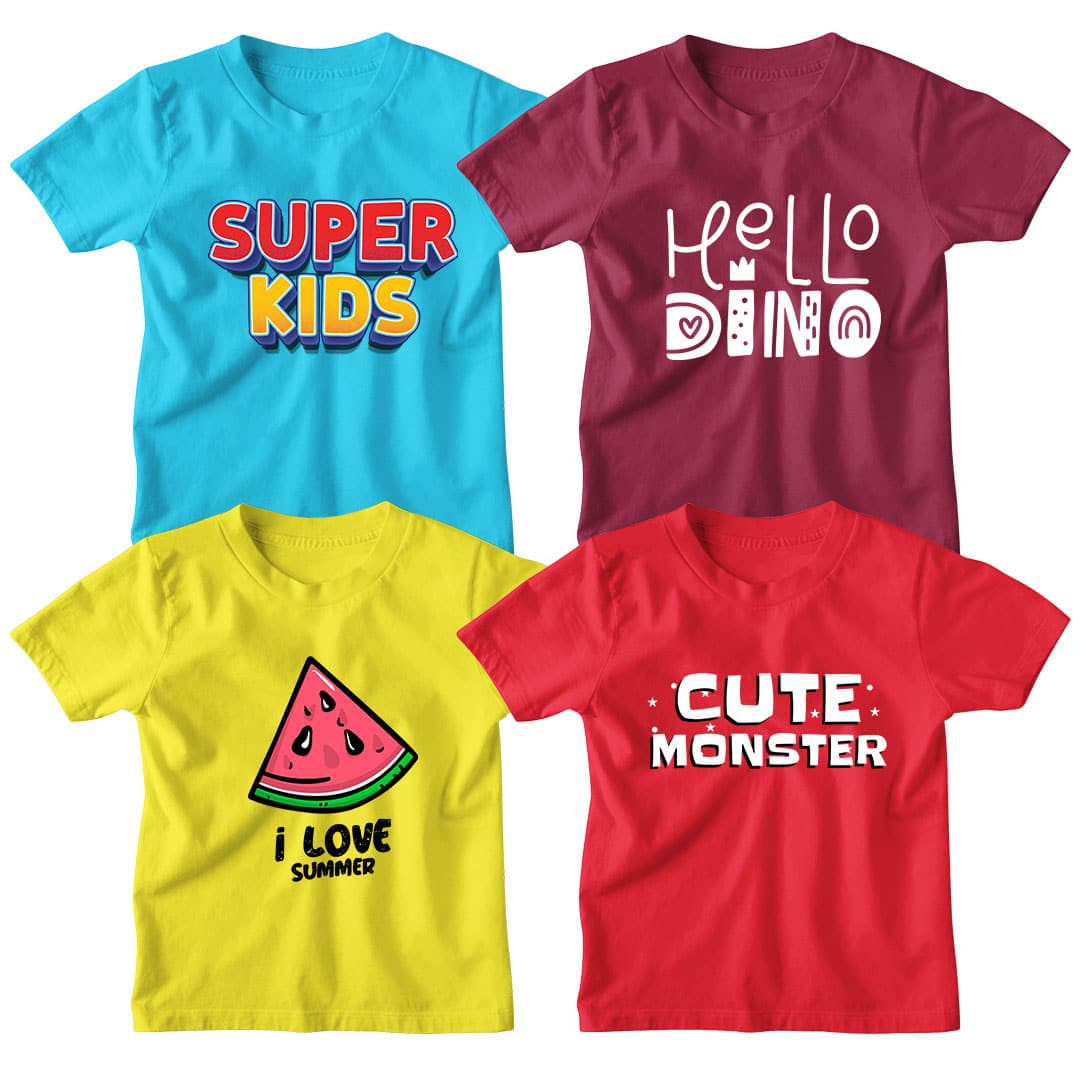 This bundle of kid’s printed t-shirts is perfect for any occasion! Crafted with poly cotton fabric and printed with vibrant colors, these t-shirts are sure to brighten up any outfit. They come in a variety of sizes, so you can find one to fit any kid’s taste. The soft fabric is comfortable to wear, making them perfect for all-day wear. With a wide selection of designs and styles, these t-shirts are a great way to show off your kid’s personality.