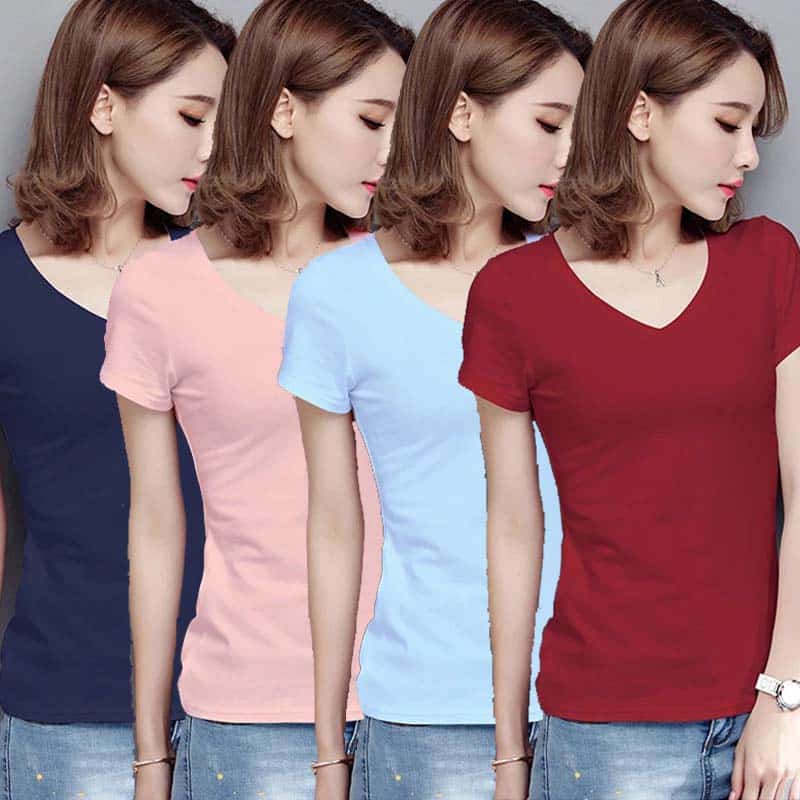 Get Pack of 4 V-Neck Half Sleeves T-Shirts For Her in just Rs 999/- only