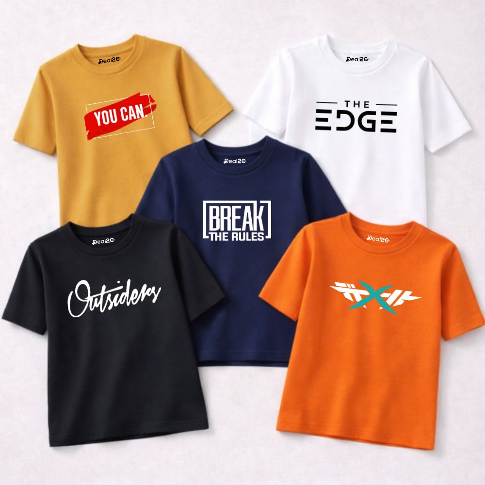 Pack of 5 Edge Rule Outsiders Printed T Shirts For Tween Kids