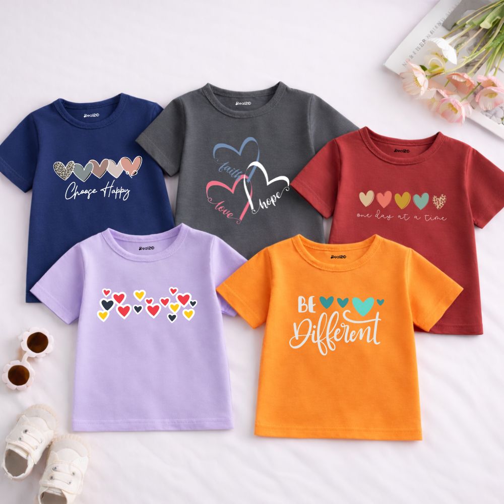 Pack of 5 Happy Different Love Printed T-Shirts for Girls