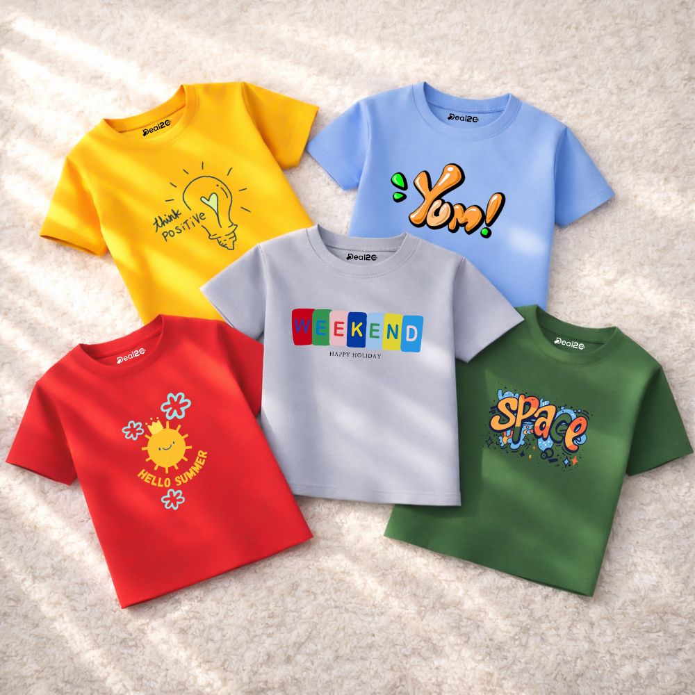 Pack of 5 Hello Weekend Space Printed T-Shirts For Boys