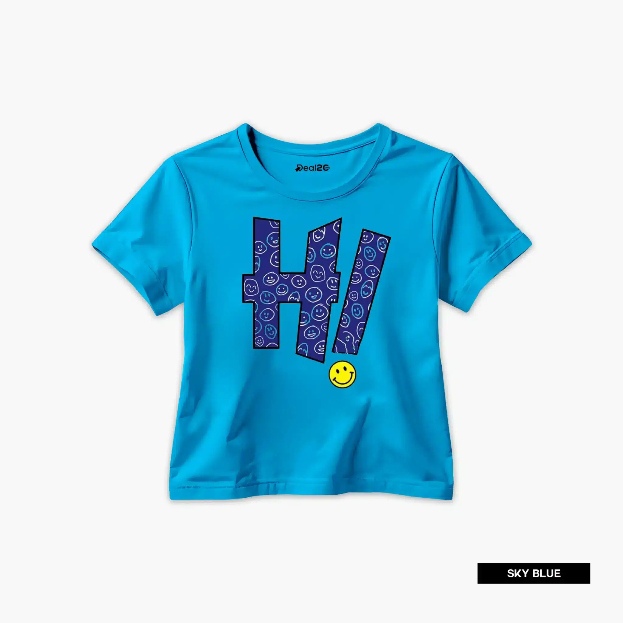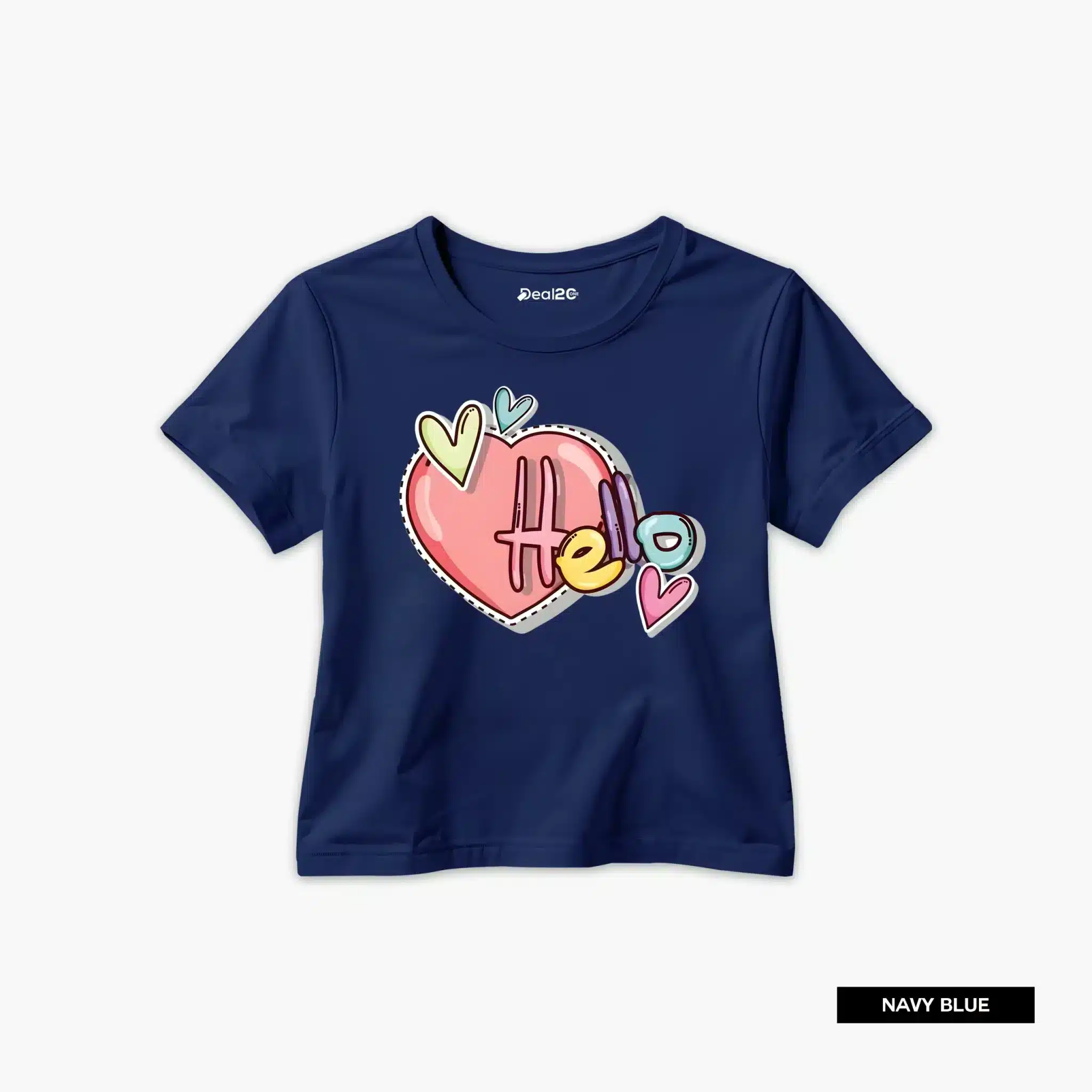 Pack of 5 Hi Hello Sweet Heart Printed Summer T-Shirts For Girls