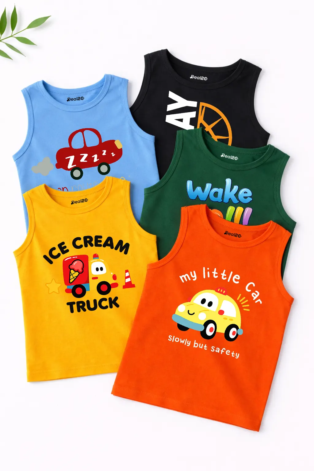 Pack of 5 Ice Cream Car Kids Printed Tank Tops