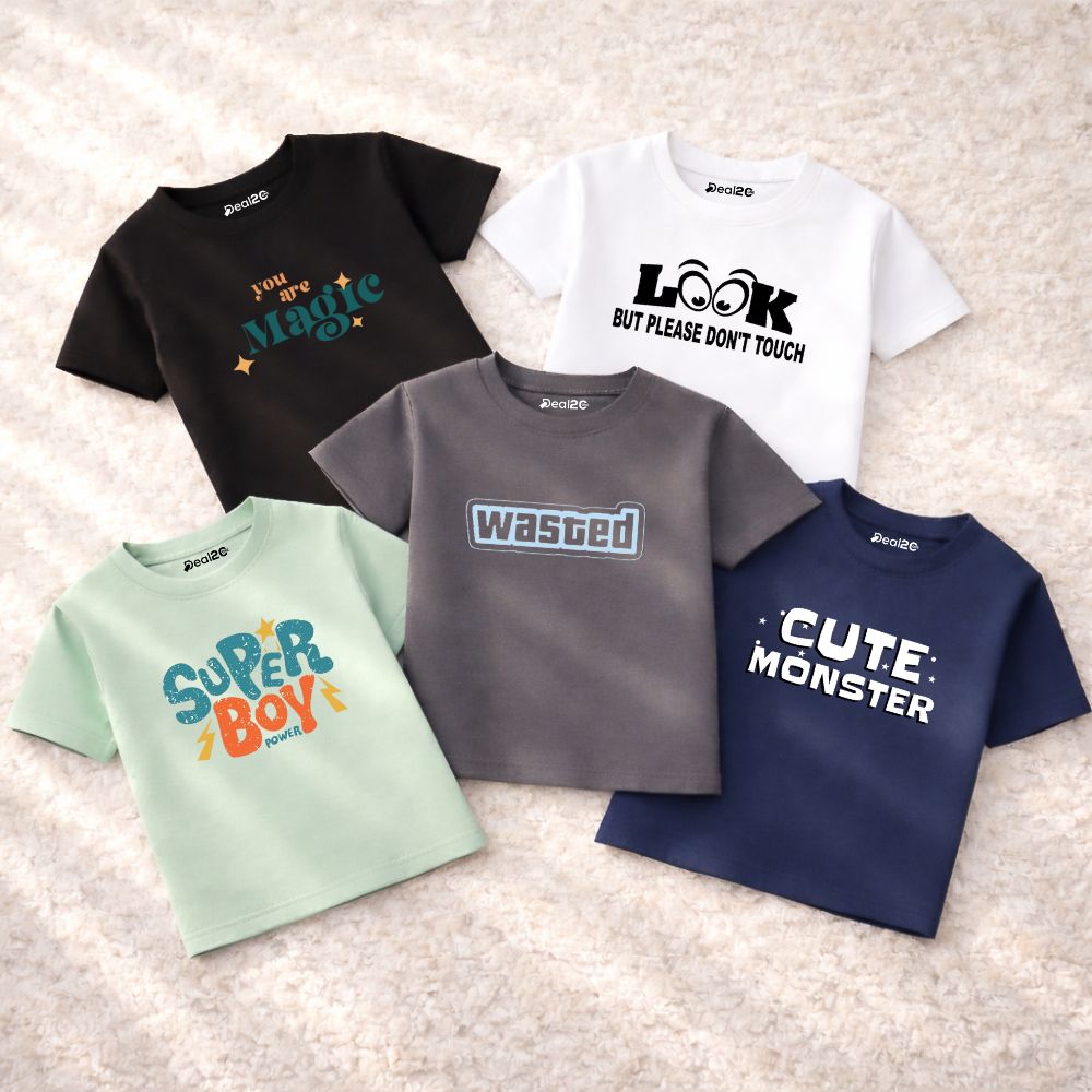 Upgrade your child’s wardrobe with our Pack of 5 Magic Touch Monster Printed T-Shirts For Boys today and enjoy the perfect fusion of fashion and functionality. Stay stylish.