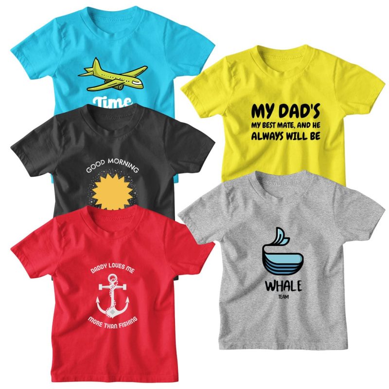 This bundle of kid’s printed t-shirts is perfect for any occasion! Crafted with poly cotton fabric and printed with vibrant colors, these t-shirts are sure to brighten up any outfit. They come in a variety of sizes, so you can find one to fit any kid’s taste. The soft fabric is comfortable to wear, making them perfect for all-day wear. With a wide selection of designs and styles, these t-shirts are a great way to show off your kid’s personality.