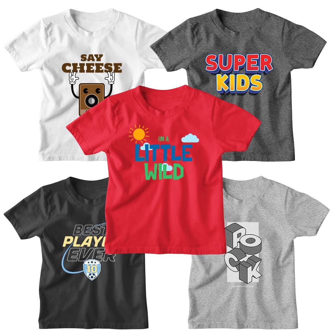 This bundle of kid’s printed t-shirts is perfect for any occasion! Crafted with poly cotton fabric and printed with vibrant colors, these t-shirts are sure to brighten up any outfit. They come in a variety of sizes, so you can find one to fit any kid’s taste. The soft fabric is comfortable to wear, making them perfect for all-day wear. With a wide selection of designs and styles, these t-shirts are a great way to show off your kid’s personality.