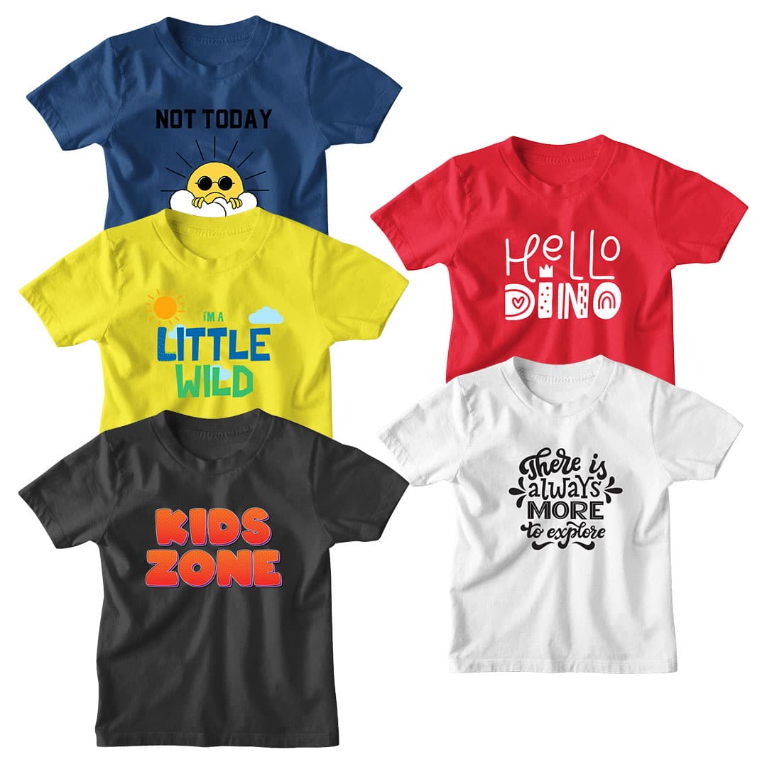 This bundle of kid’s printed t-shirts is perfect for any occasion! Crafted with poly cotton fabric and printed with vibrant colors, these t-shirts are sure to brighten up any outfit. They come in a variety of sizes, so you can find one to fit any kid’s taste. The soft fabric is comfortable to wear, making them perfect for all-day wear. With a wide selection of designs and styles, these t-shirts are a great way to show off your kid’s personality.