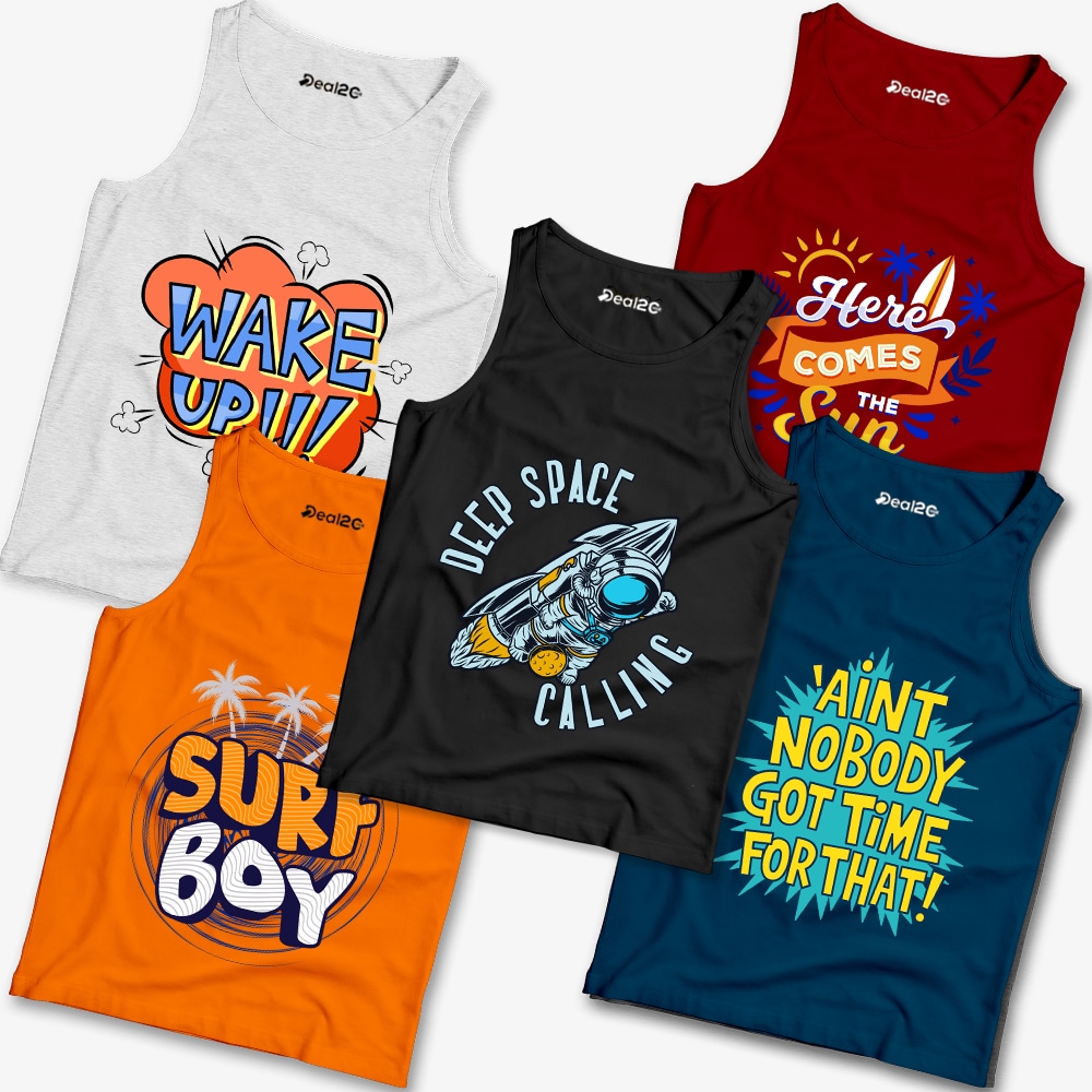 Pack of 5 Wake Up Boy Its Deep Space Calling Time Kids Printed Tank Tops