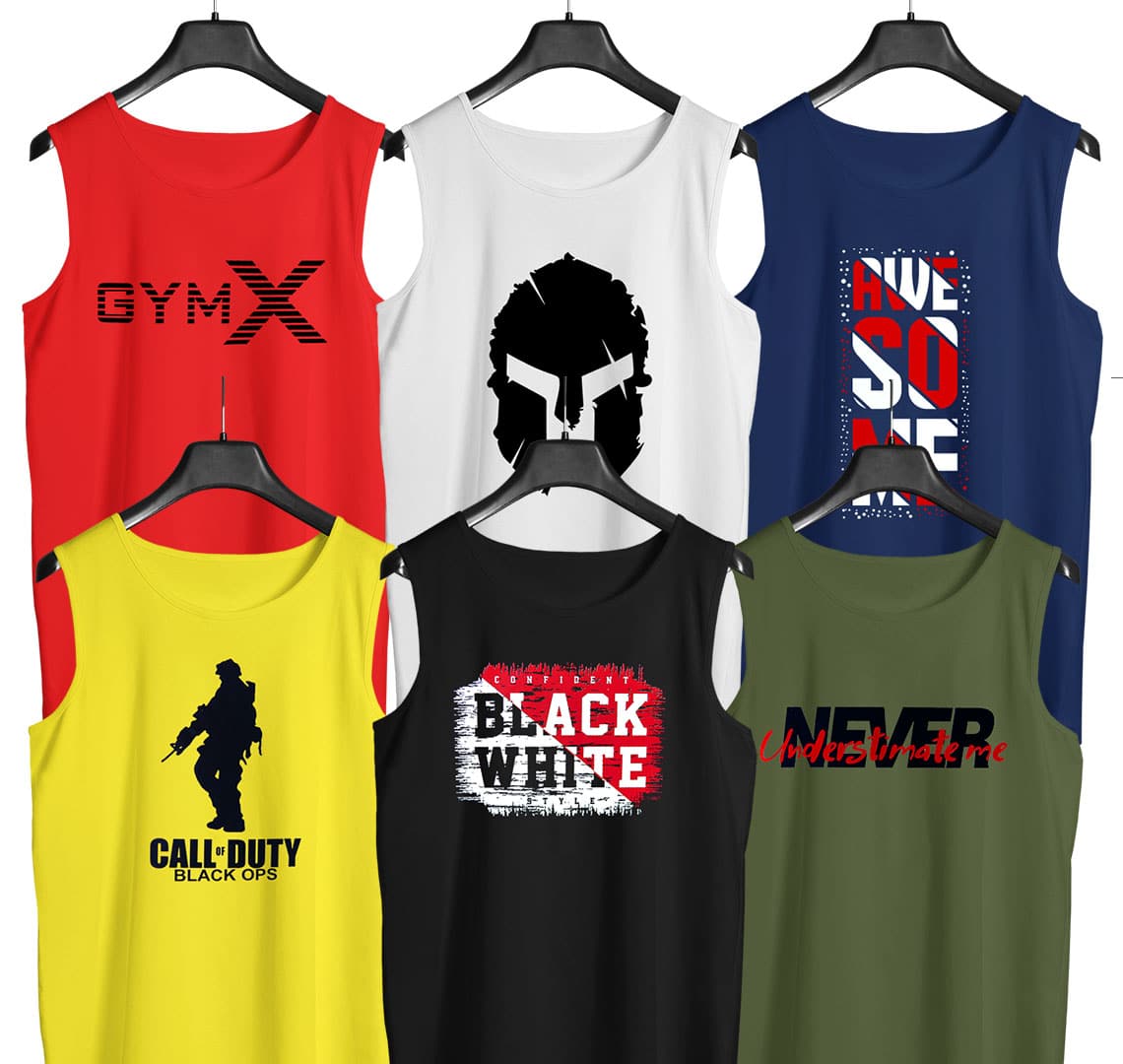 Get a Pack of 6 Call of Duty Gym Printed Tank Tops for Mens for just Rs 2499/- only
