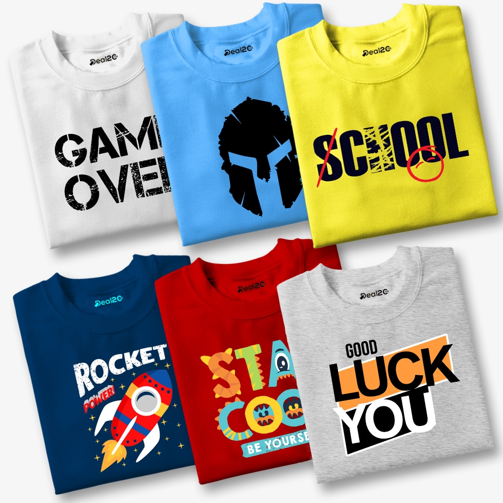 Pack of 6 School Rocket Luck Game Printed T-Shirts for Kids