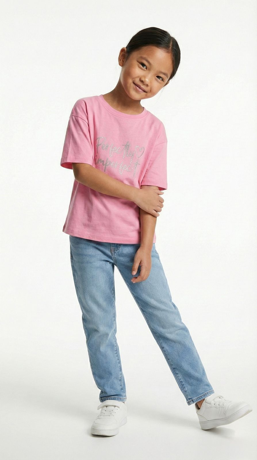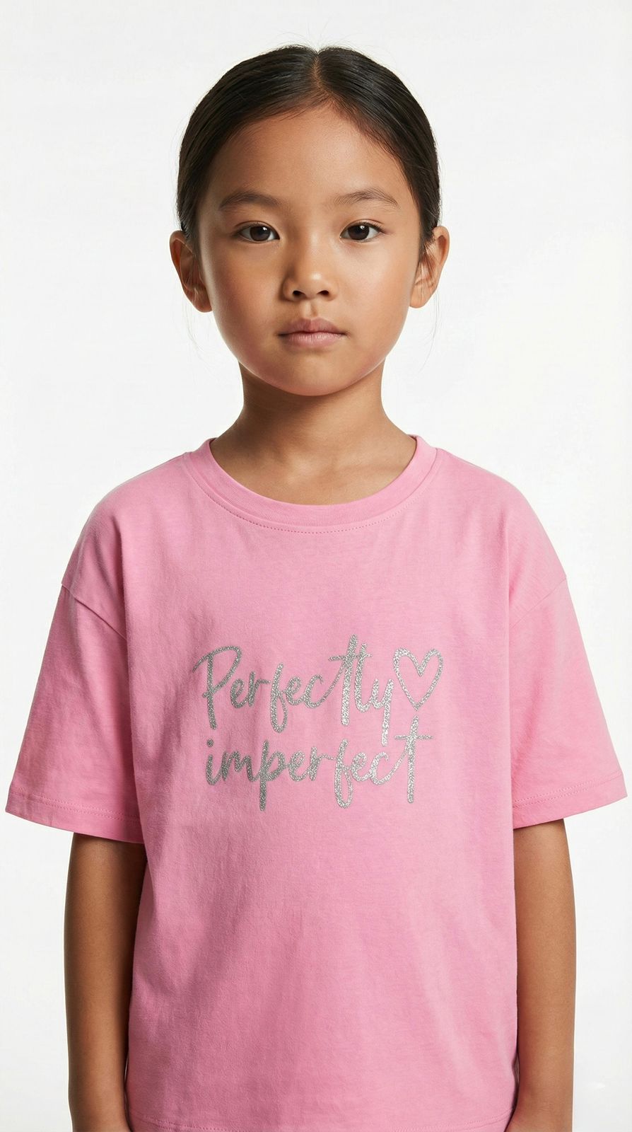 Featuring a stylish “Perfectly Imperfect” print, this t-shirt brings a positive, lively vibe to your child’s wardrobe. The design reflects energy, confidence, and joy—perfect for girls who love to express themselves effortlessly.