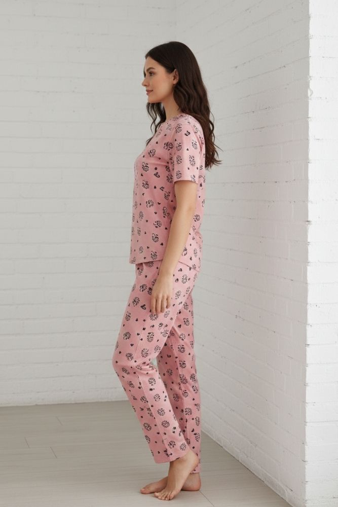 Relax in effortless style with the Pink Blush Bloom Floral Print Jersey Nightwear Set for Women, designed for women who love soft comfort with a graceful look. Crafted from breathable and stretchable jersey fabric, this two-piece nightwear set offers a smooth feel against the skin for all-night ease.