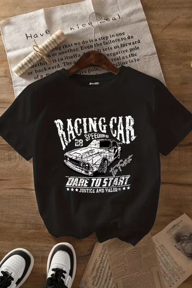 Upgrade your child’s wardrobe with our Racing Car Printed Black T-Shirt For Boys today and enjoy the perfect fusion of fashion and functionality. Stay stylish.