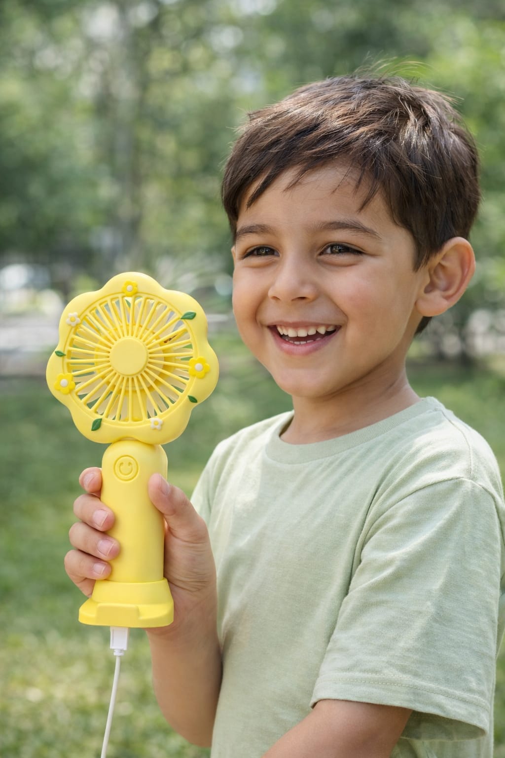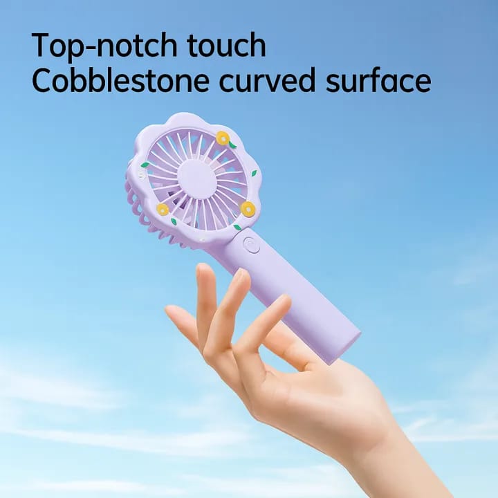 Its flower‑shaped grille design adds a touch of charm while delivering strong, quiet airflow. Easy to carry and quick to charge, this mini fan is your go‑to cooling companion.