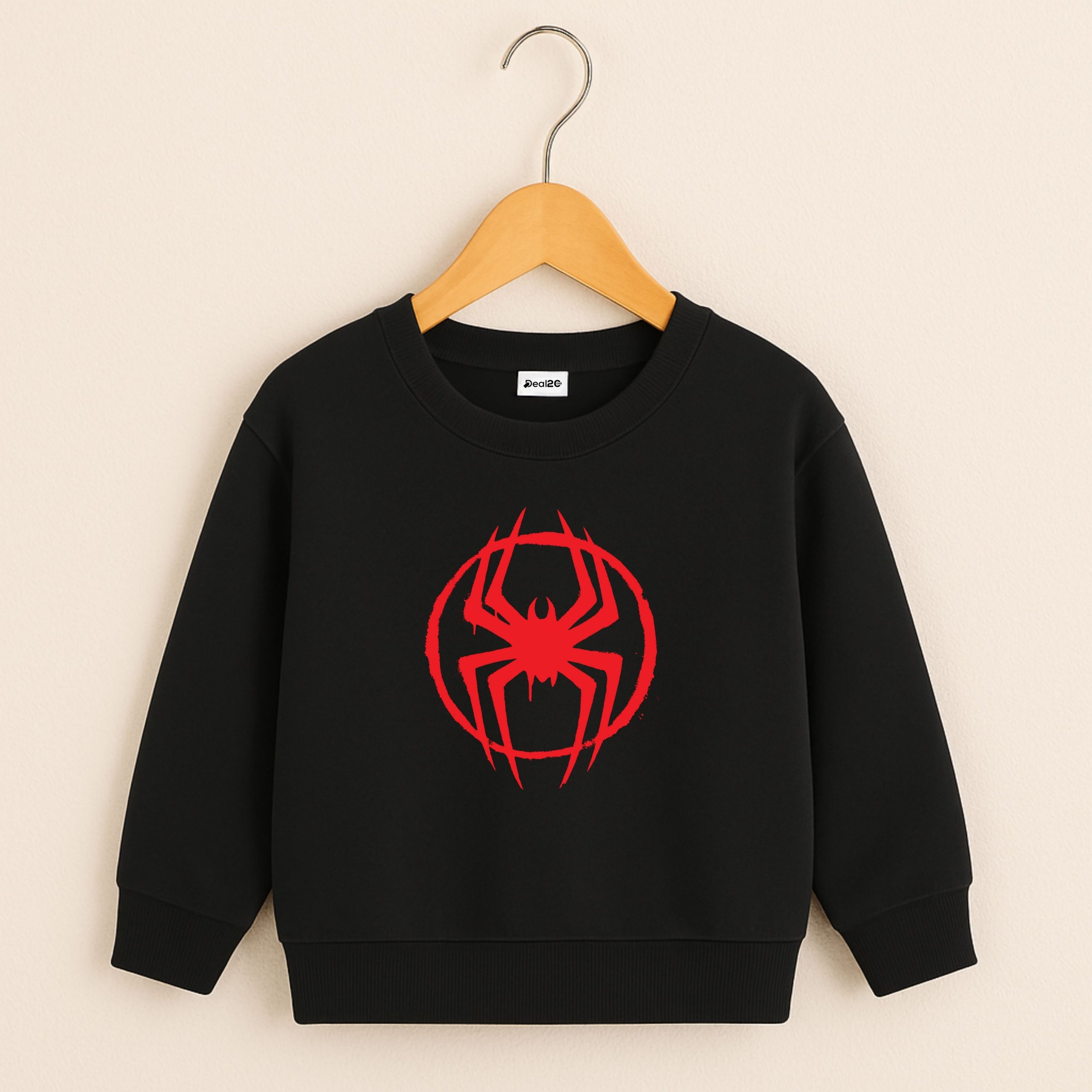 ✅ Red Spider Printed Black Sweatshirt for Young Kids