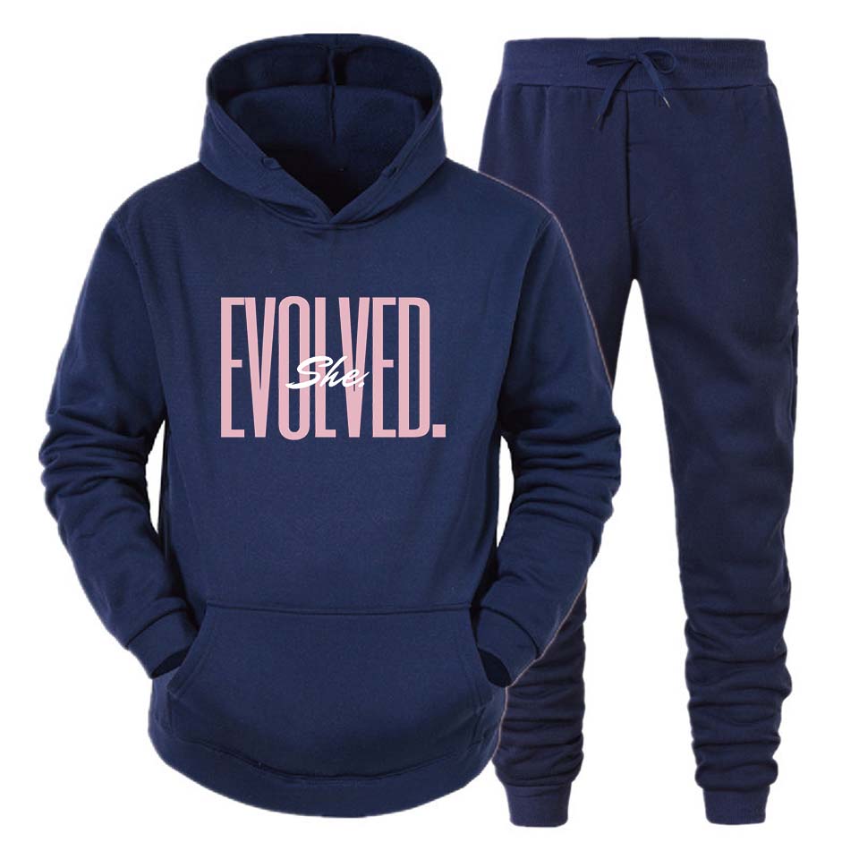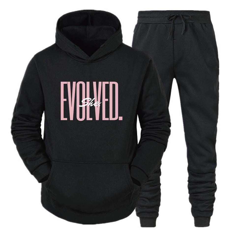 Modern Design: The sleek, modern silhouette fits perfectly, providing a flattering and trendy look. The hoodie comes with an adjustable drawstring for added style and function, while the matching track pants feature an elastic waistband for a comfortable, customizable fit.