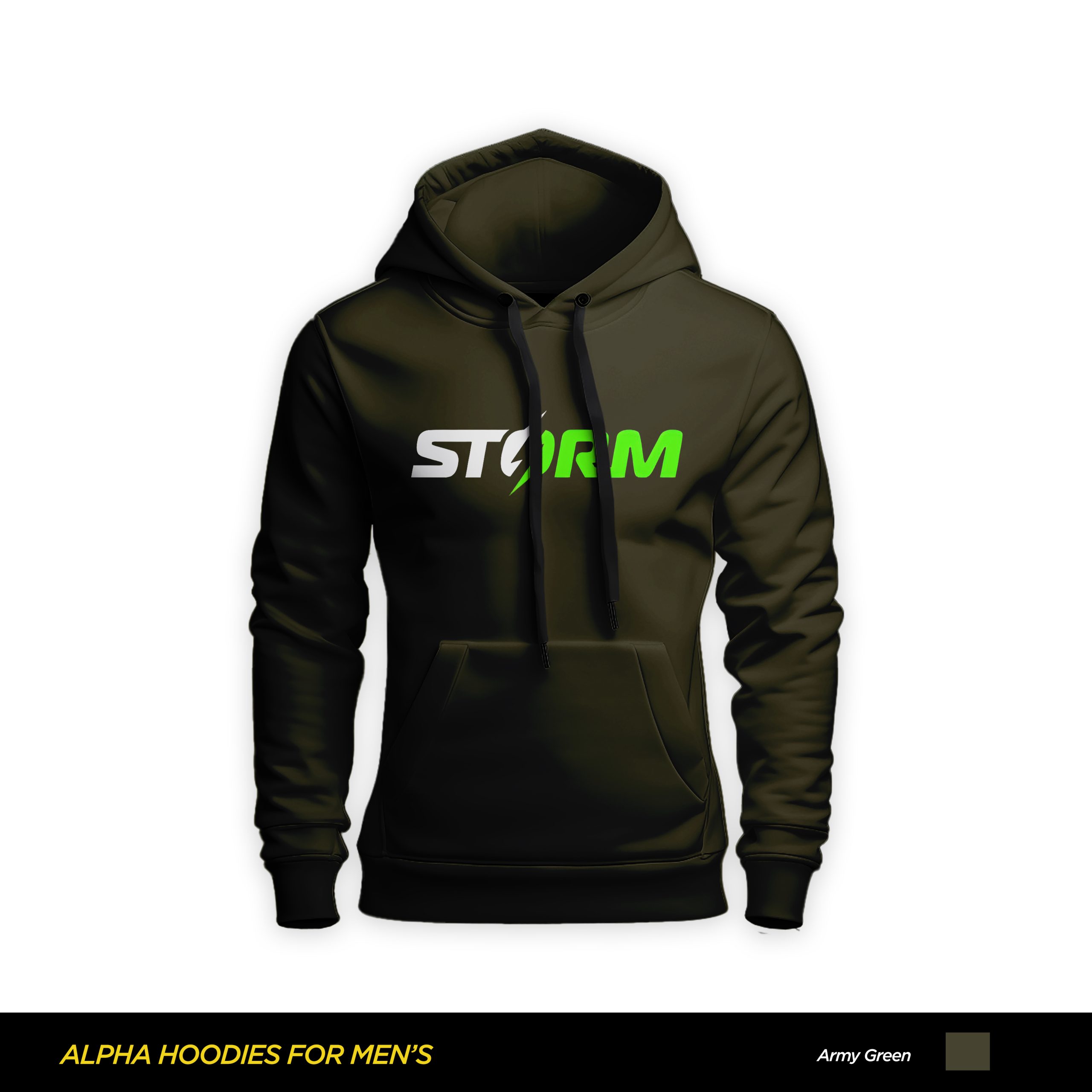 Stay polyester warm and stylish with the Storm Printed Army-Green Hoodie For Men. Designed with front pockets and a perfect fit, this hoodie is great for casual outings, lounging at home, or layering up in the winter chill.