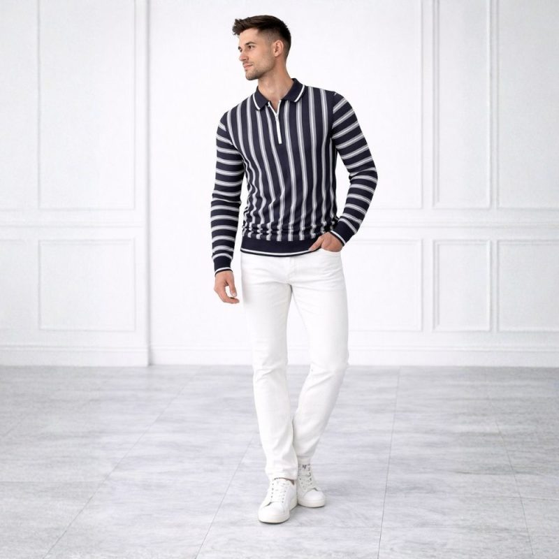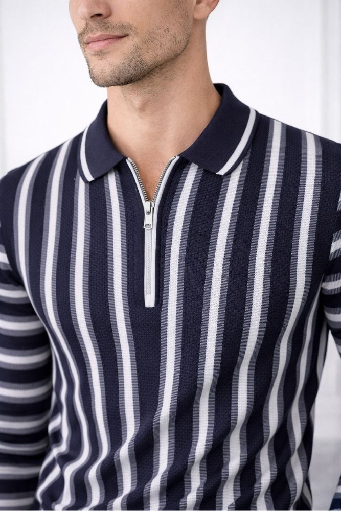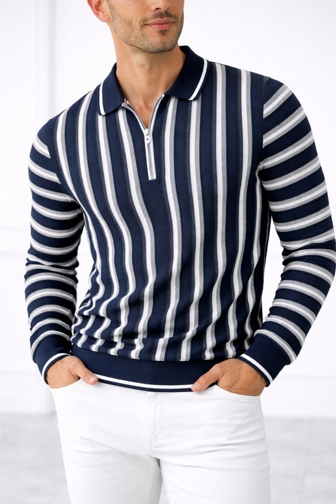 Stylish stripe design with zip collar for a modern and trendy appearance