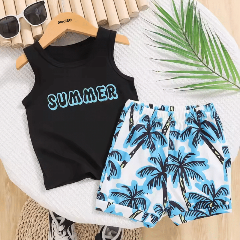 Summer Casual Sports Printed Tanktop Short Suit For Kids