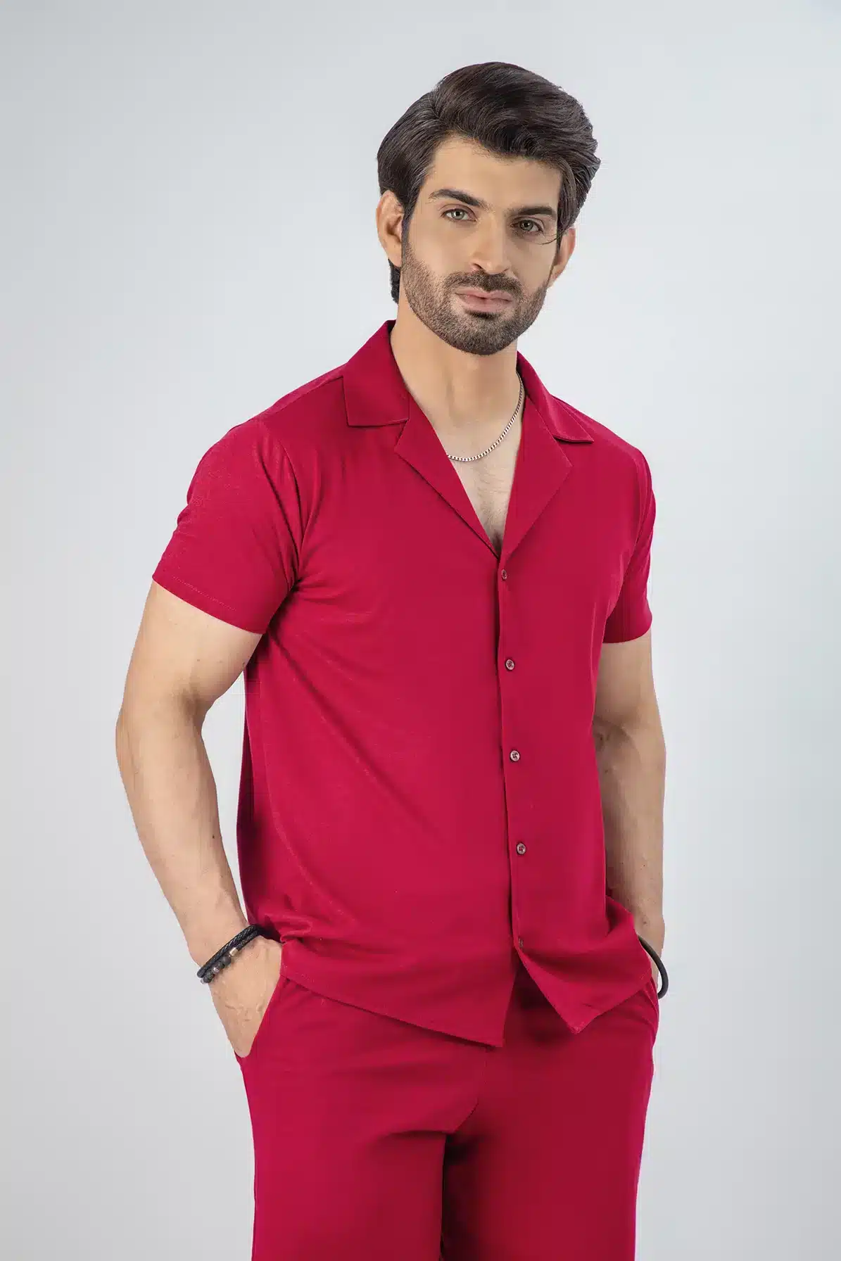 Rock your summer in style with our men maroon front open summer short suit. Crafted from breathable synthetic fabric, this regular-fit summer short suit for men ensures all-day comfort. Perfect for beach days, vacations, and casual outings, it blends laid-back fashion with effortless style—keeping you fresh and stylish all summer.