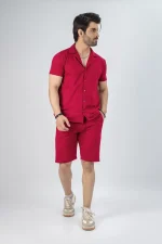 Rock your summer in style with our men maroon front open summer short suit. Crafted from breathable synthetic fabric, this regular-fit summer short suit for men ensures all-day comfort. Perfect for beach days, vacations, and casual outings, it blends laid-back fashion with effortless style—keeping you fresh and stylish all summer.