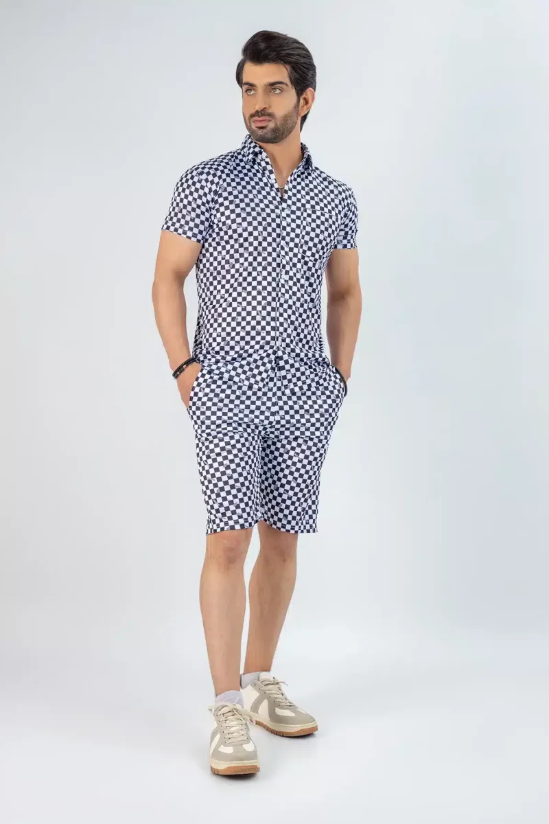 light up your summer with our men square checked printed summer beach short suit. crafted from lightweight and breathable synthetic fabric with a regular fit, this beach checked summer short suit offers all-day comfort for beach outings and casual fun. its distinctive square check design adds a unique, trendy vibe, making it perfect for your summer adventures.