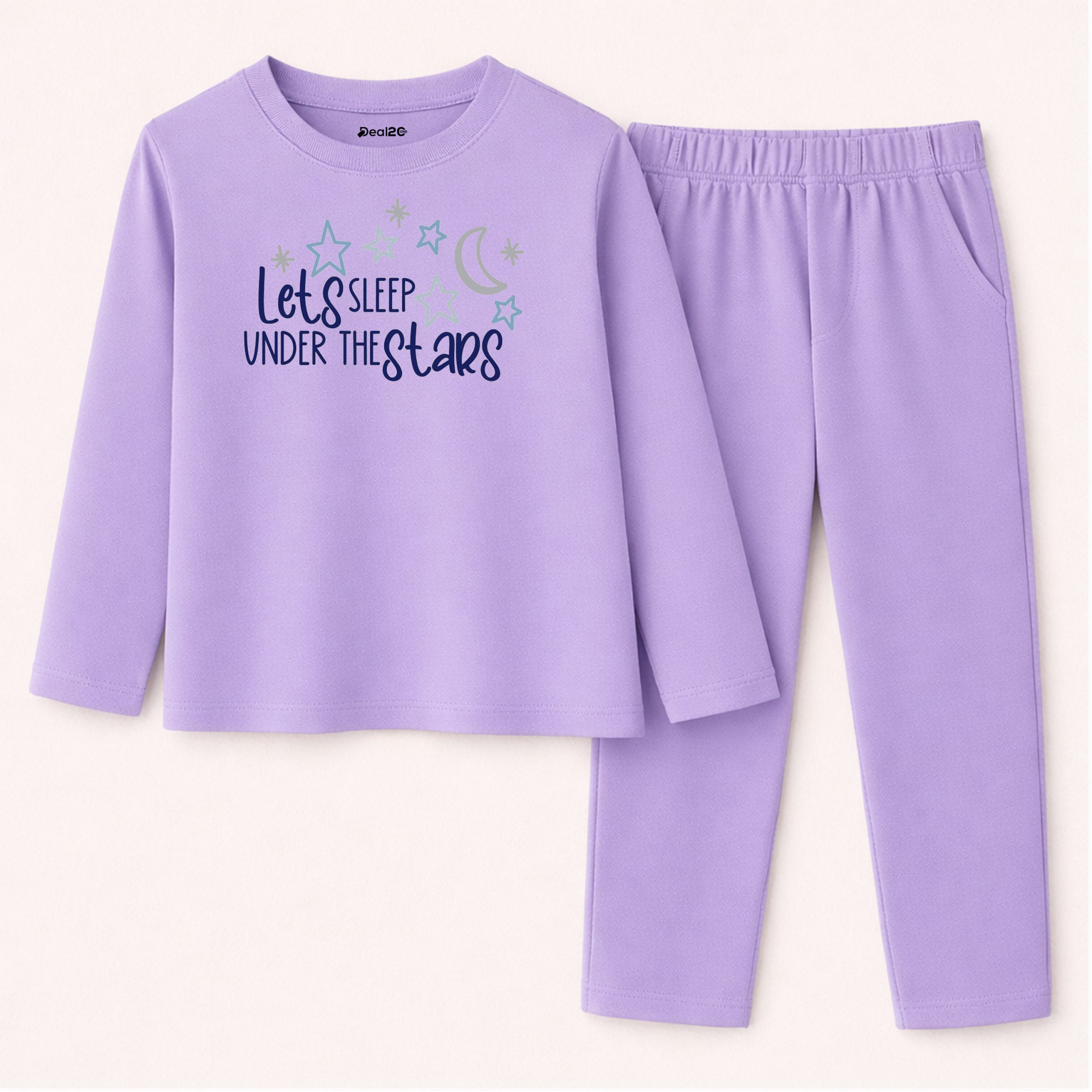 Under The Stars Printed Purple Summer Nightwear For Kids