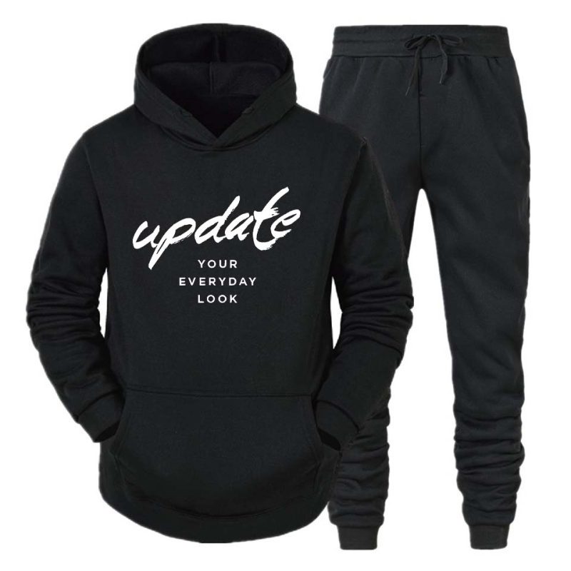Modern Design: The sleek, modern silhouette fits perfectly, providing a flattering and trendy look. The hoodie comes with an adjustable drawstring for added style and function, while the matching track pants feature an elastic waistband for a comfortable, customizable fit.
