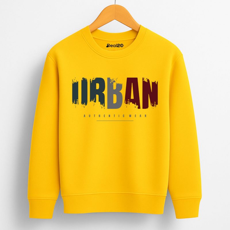 Add a pop of color to your kid’s wardrobe with our Urban Printed Yellow Sweatshirt for Tween Kids. Featuring a bold “Urban” print on a vibrant yellow base, this sweatshirt delivers a fun and confident style ideal for school, outings, and daily wear. Its lively design ensures kids stand out while staying comfortable all day.