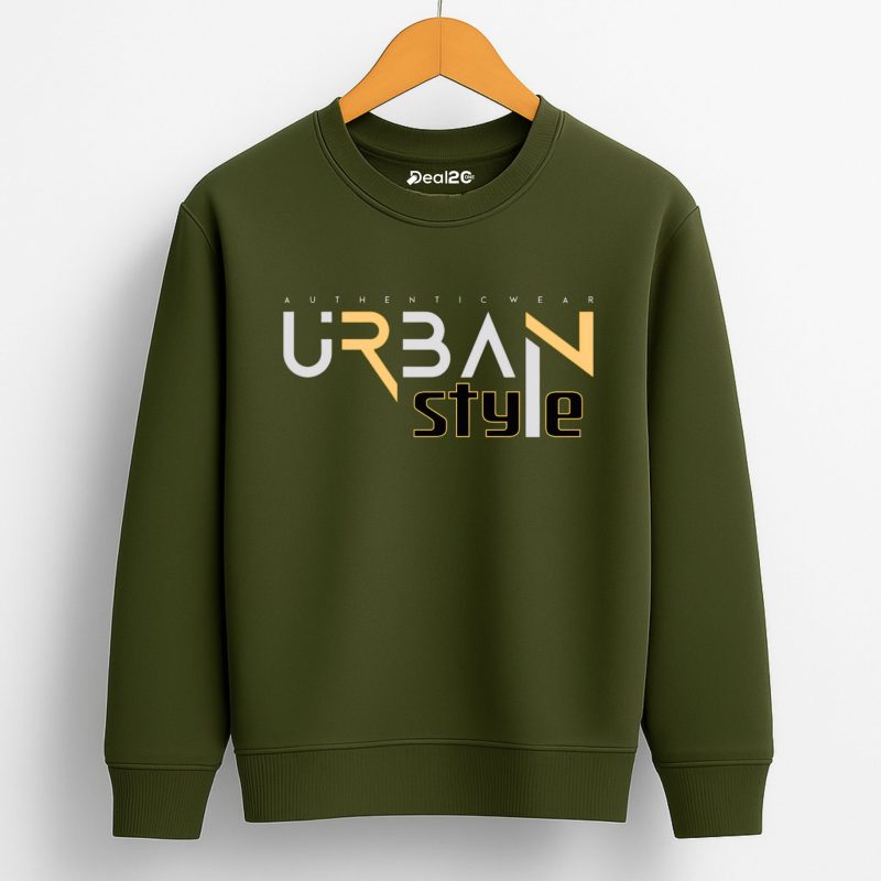 ✅ Urban Style Printed Army Green Sweatshirt for Tween Kids