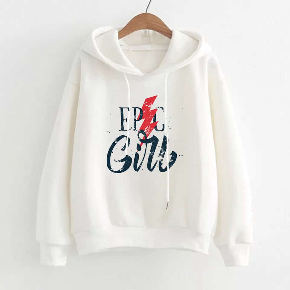 Get White Epic Girl Printed Pullover Hoodie in just Rs 1199/- only