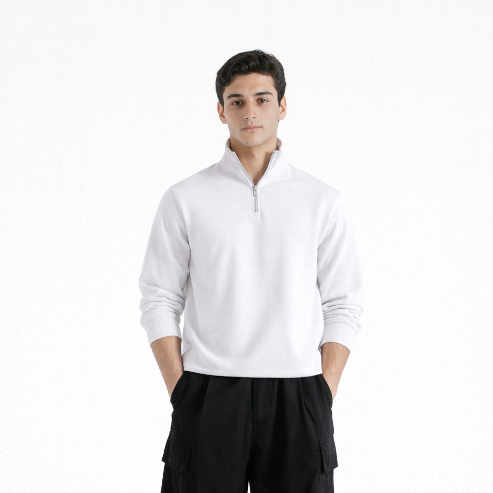 Refresh your winter wardrobe with our White Half Zip – Lined Sweatshirt for Mens, designed for men who prefer a minimal yet stylish look with maximum comfort. Ideal for casual wear, travel, office layering, or relaxed outings, this sweatshirt adds a clean and modern touch to your everyday style.