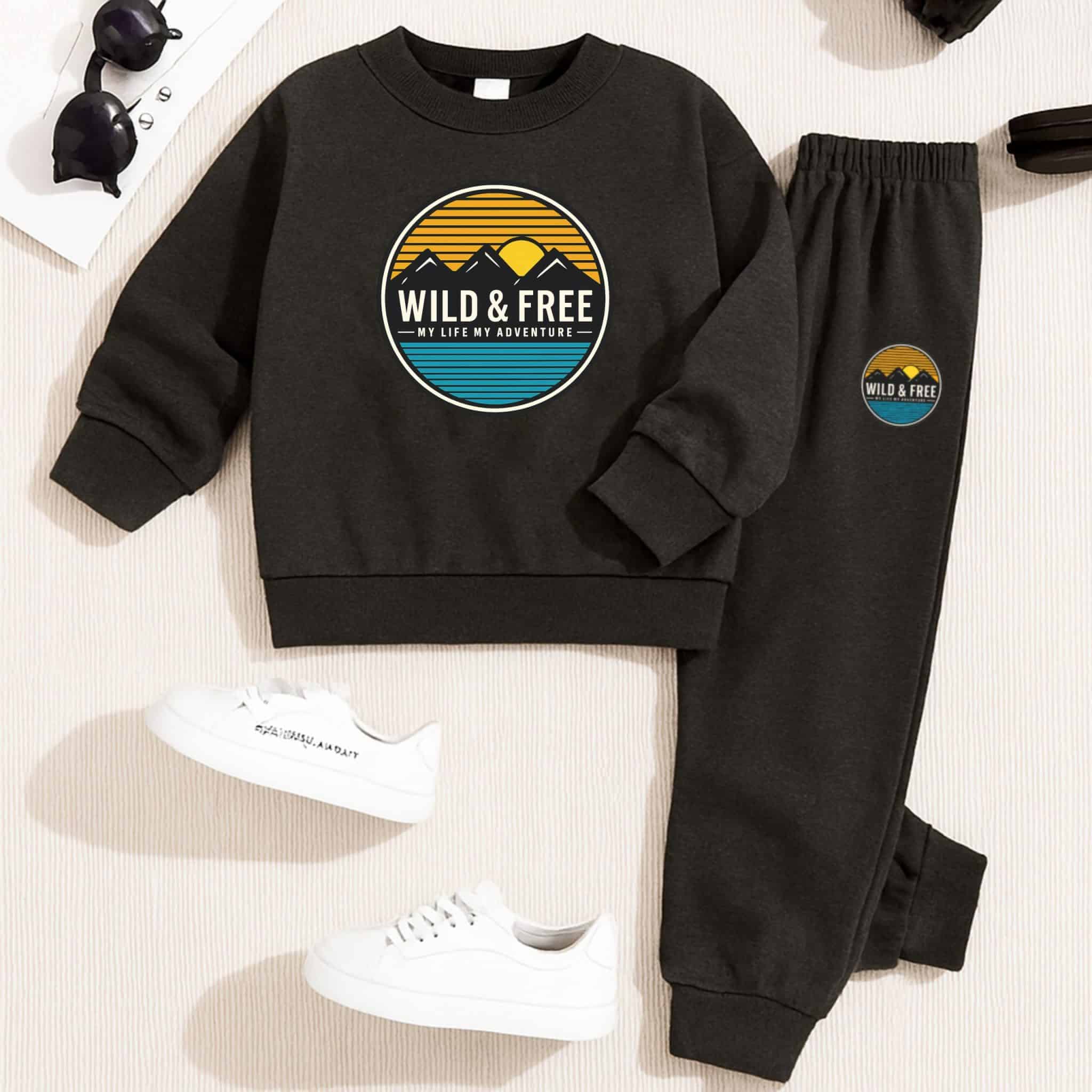 Wild & Free Printed Sweatshirt Tracksuit For Kids