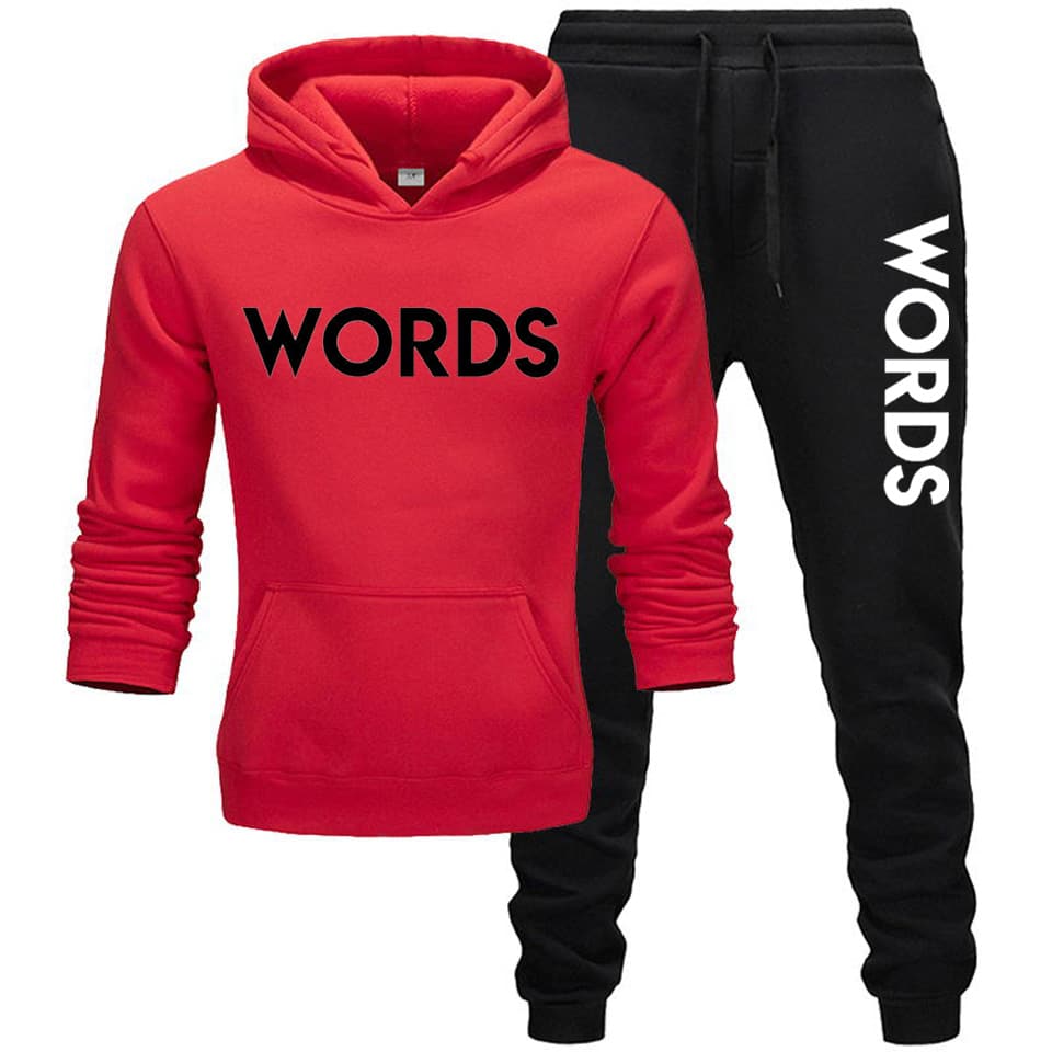 Words Red & Black Printed Winter Hooded Tracksuit