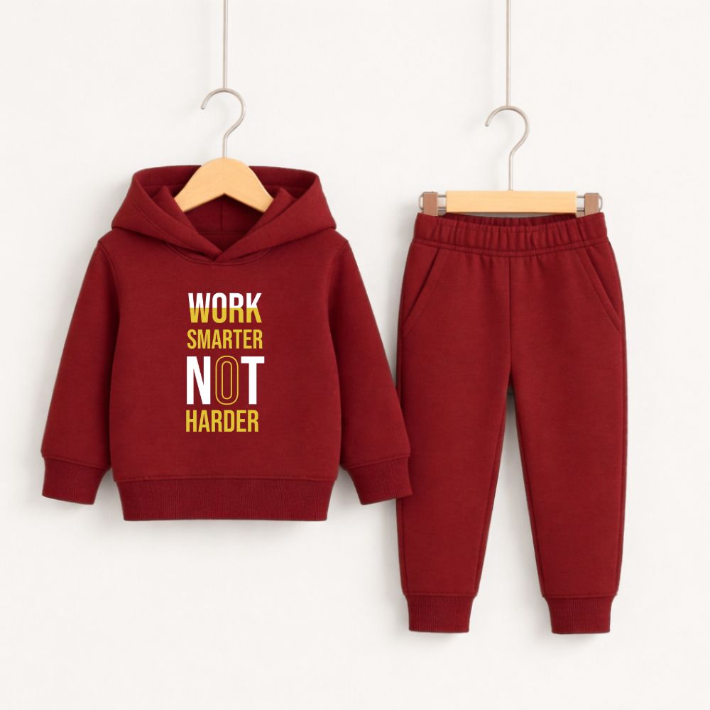 ✅ Work Smart Printed Maroon Hooded Tracksuit for Tween Kids